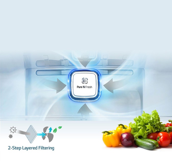 Usa frigiderului fiind dotata cu tehnologia Door-in-Door va permite accesul mai usor la bauturi și gustari. Datorită constructiei Slim Frame al usii Door-in-Door, spațiul interior a zonei de refrigerare crescut cu 9%, iar rafturile suplimentare de pe usa ofera inca un mod de a va organiza frigiderul mai bine. In plus datorita tehnologiei Insta View Door-in-Door de la LG, vezi in interior in spatiul de refrigerare fara sa deschizi usa, ca intr-o vitrina, datorita peretelui despartitor din sticla, asa ca pierderea de aer rece este redusa la 41%.