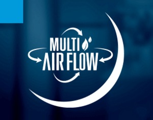 In plus Midea are in dotare si tehnologia de racire Multi Airflow, pe baza de curenti de aer multidirectionali pe mai multe canale, unde exista o grila prin care aerul rece pastrand temperatura si umiditatea constanta, intra prin mai multe orifici in compartimentul combinei. Aceasta tehnologie mentine calitatea si prospetimea alimentelor pentru o perioada indelungata. Comutatoarele de contact ale usii opresc ventilatorul la deschiderea acesteia.