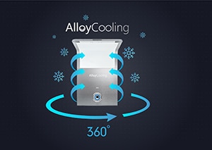 Toshiba cu un singur compresor puternic prevazut cu o electrovalva, permite funcţionarea independenta a frigiderului si a congelatorului, fiind dotat cu tehnologii de varf, perfect pentru o familie numeroasa, cu diverse preferinte culinare. Combina frigorifica Toshiba GR-RF692WE-PMJ are sistem de racire No Frost, unde umiditatea din aer ce se acumuleze in aparat sau pe alimente, este colectata de vaporizatorul central cu aripioare. Acest racitor care extrage caldura din zona de congelare, se dezgheata automat din cand in cand. Condensul rezultat este scos in exterior si evaporat, intr-un recipient special de colectare, utilizand caldura compresorului. In acest fel se reduce umiditatea din aparat, ceea ce inseamna ca aproape nu se formeaza gheata si astfel nu mai trebuie sa iti faci griji pentru dezghetare. Controlul precis si individual al temperaturii pentru compartimentul de refrigerare si compartimentul de congelare al combinei frigorifice Toshiba GR-RF692WE-PMJ este obtinut prin sistemul cu No Frost/Dual Cooling, care combina doua sisteme de aer diferite, rece si umed in zona de refrigerare si rece si lipsit de umiditate in zona de congelare. Acest sistem de racire impiedica acumularea ghetii in zona de congelare, combinat cu sistemul de racire din zona de refrigerare. Acest model are tehnologia de racire No Frost automat atat a frigiderului cat si a congelatorului. Aceasta tehnologie fiind una dintre cele mai bune sisteme de racire de pe piata, sistemul instalat in compartimentul congelatorului, previne acumularea de gheata, mentinand un consum scazut de energie, in timp ce in compartimentul frigiderului mentine un microclimat ideal pentru mancarea proaspata. Iar in zona de refrigerare pentru a mentine alimentele proaspete pentru mai mult timp, aceasta combina este dotata si cu tehnologia Alloy Cooling 360° din spatele zonei de racire, ce consta dintr-un sistem de racire fortat cu ajutorul unui sistem de ventilare cu aer rece, ce disipeaza caldura mult mai rapid, marind performanta de racire.
