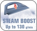 Aparatul ofera urmatoarele optiunii: Jetul de abur normal, este variabil pana la maxim 130 g de abur pe minut pentru a umezi si inmuia tesaturile, asigurand o calcare perfecta. Pentru a indeparta cutelor persistente, jetul de abur la varf este puternic de pana la maxim 130 g/minut timp de 4 secunde.