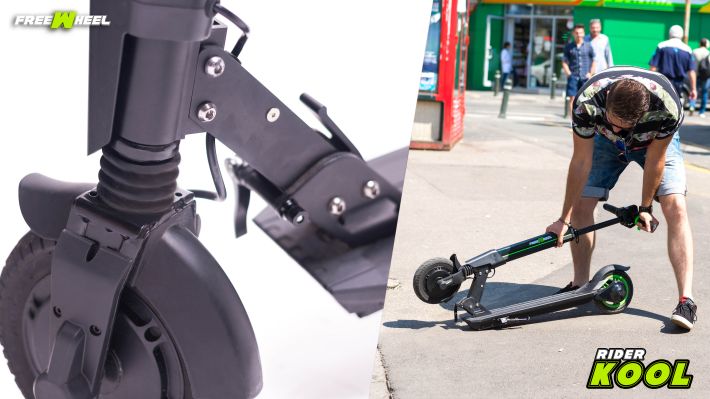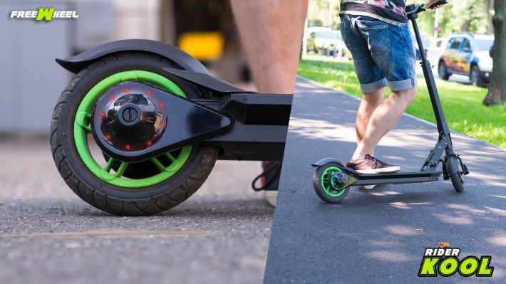 Freewheel Rider Kool functioneaza precum o trotineta clasica cu propulsie electrica si va permite sa efectuati plimbari in curte in parc sau pe pistele speciale din oras. Cadrul trotinetei este facut dintr-un material foarte usor si rezistent din aluminiu, ce dau nastere unui produs extrem de solid. Ghidonul fiind destul de inalt permite ca persoana care foloseste acest vehicul sa aiba o inaltime minima de 150 cm si maxima de 210 cm, cu o greutate maxima de 100 Kg. Furca rotii din fata este dotata cu un sistem de amortizare socuri Shock Sistem, ce permite ca acest vehicul sa circule si pe trasee cu grad mediu de dificultate cum ar fi pajistile cu iarba din parcurile naturale sau teren accidentat cu grad mediu.