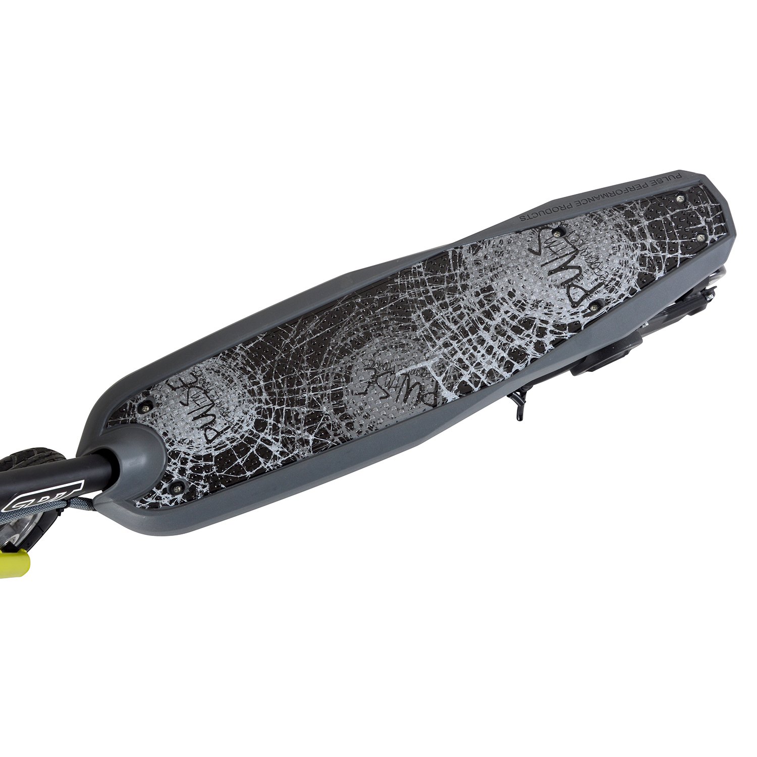 Trotineta electrica Pulse Sonic 200 W va permite o miscare uniforma punand astfel in miscare toate grupele de muschi importante atat la nivelul abdomenului, picioarelor si feselor. Acest model cu dimensiunile de: (L, l, H)cm 99,56 x 21,8 x 96 (39,2 x 8,3 x 37,8 inches) are o greutate de 8 Kg (17,5 pounds) si nu ocupa mult loc. Pulse Sonic 200 W functioneaza precum o trotineta clasica cu propulsie electrica si va permite sa efectuati plimbari in curte in parc sau pe pistele speciale din oras. Cadrul trotinetei este facut dintr-un material foarte rezistent din otel, ce dau nastere unui produs extrem de solid. Ghidonul este fix, acest vehicul fiind recomandat pentru tineri cu inaltimea de maxim 150 cm, cu o greutate maxima de 68 Kg. Cele 2 roti din dotate cu rulmenti ABEC-5, sunt de tip tubeles pneumatice iar roata motoare din spate este antrenata de motorul electric de un lant de transmisie.