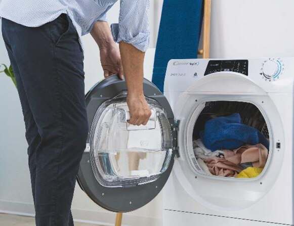 Atunci cand vremea este nefavorabila hainele intinse la uscat pe balcon se usuca foarte greu, plus ca ridica gradul de umezeala din casa ce genereaza o atmosfera nesanatoasa si plina de sporii de mucegai. Uscatorul de rufe reprezinta, asadar, singura solutie care nu depinde de prognoza meteorologica. Prin controlul precis al temperaturii si al timpului de expunere uscatorul are grija de textura rufelor. Acest model este produsa in Italia de specialisti italieni din Brugherio (MB). Astfel brand-ul Candy este recunoscut in lume, cu o cota de piata din ce in ce mai importanta, mai ales pe segmentul de electrocasnice. Uscatorul dotat cu pompa de caldura si facuta de specialisti italieni, este o optiune pentru o astfel de solicitare. Uscatorul de rufe Candy RO H10A2TCEX-S cu condensare si capacitatea de uscare de 10 Kg îndeplineste o mare dorinţă: aceea de a reuşi să usuce rufele în scurt timp, eliminând spaţiul ocupat de suportul de întins rufe. Cu ajutorul programelor speciale, capabile sa trateze chiar si rufele cele mai delicate, uscatorul stie sa aiba grija de tesaturii. Senzorii speciali permit maşinii de uscat rufe să măsoare umiditatea reziduală din haine şi să se oprească automat la atingerea nivelul corespunzător. In acest caz avem de-a face cu un uscator economic si din punct de vedere al consumului energetic fiind incadrata in clasa de eficienta energetica A++ la uscare si clasa B la centrifugare/uscare, datorita procentului de condensare de peste 84%. Design-ul special al peretilor laterali ai masinii de uscat reduc foarte mult zgomotul si nivelul vibratiilor in timpul uscari. Uscatorul de rufe Candy RO H10A2TCEX-S avand un motor universal, asigura o functionare silentioasa de 66 dB la uscare ridicandu-se la unul din cele mai ridicate standarde de eficienta energetica. Tehnologia inovativa a acestui model cu pompa de caldura este o combinatie intre un uscator in condensatie si o pompa de caldura. Sistemul pompei de caldura, genereaza aer fierbinte ce usuca rufele prin condensare, unde apa reziduala din rufe este transformata in abur care este colectat si transformat din nou in condens colectat intr-un recipient de colectare special plasat pe uscător. Cu acest sistem de condensare de la Candy, condensul rezultat in urma procesului de uscare, se acumuleaza intr-un recipient transparent, incorporat in usa de acces a uscatorului, pe care il poti goli periodic foarte usor. Astfel aceasta tehnologie din dotare Easy Case iti da posibilitatea de a verifica in orice moment nivelul de condes colectat in acest rezervor transparent. Pentru un plus de confort aceasta tehnologie iti da posibilitatea si de a verifica in orice moment nivelul de condes colectat in acest rezervor transparent. Iar atunci cand programul de uscare este finalizat va apare si un simbol de avertizare pe panoul de comanda care ne atentioneaza ca acest rezervor de condens trebuie sa fie golit. Daca programul de uscare este reluat fara ca sa fie golit rezervorul de condens, dupa un timp masina se opreste automat.