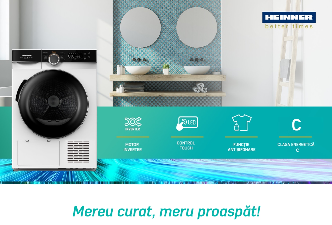 Uscatorul de rufe Heinner HHPD-M10K3A+++ cu puterea instalata de 750 W, are o clasa de eficienta energetica inalta A+++ dupa vechea etichetare energetica si consum redus de resurse energetice. Consumurile de resurse energetice raman la fel, sa schimbat numai clasa de etichetare energetica si modul de calcul.