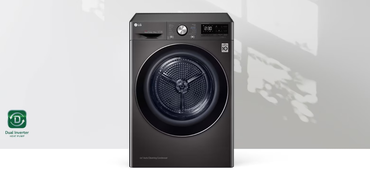 Tehnologia inovativa a uscatorului de rufe LG RH90V9JV2N dotat cu pompa de caldura este o combinatie intre un uscator in condensatie si o pompa de caldura. Tehnologia avansata de invertor cu Dual Inverter Heat Pump asigura un nivel de eficienta energetica ridicata intr-un timp foarte scurt. Cu aceasta tehnologie intervalul de viteza al circulatiei agentului frigorific variaza de la foarte rapid la foarte lent, fara a il activa sau dezactiva cu ajutorul compresorului, rezultand mai putin zgomot si mai putine vibratii cu costuri energetice reduse de pana la 22%.