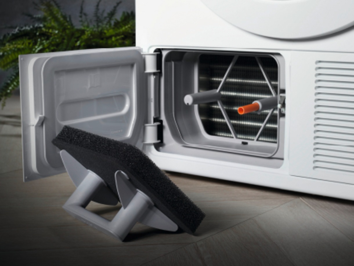 Tehnologia inovativa a uscatorului de rufe Miele TSL783WP EU1 LW este o combinatie intre un uscator in condensatie si o pompa de caldura. Sistemul pompei de caldura, genereaza aer fierbinte ce usuca rufele prin condensare, unde apa reziduala din rufe este transformata in abur, care este colectata si transformat din nou in condens, colectat intr-un recipient de plastic special plasat pe uscător. Circuitul inchis cu pompa de caldura este cel mai eficient energetic in procesul de uscare a rufelor, comparativ cu modelele conventionale. Prin intermediul acestui sistem, temperatura aerului din interiorul tamburului este considerabil redusa fata de uscatoarele conventionale si cel mai important aspect, consuma cantitati minime de energie. Acest model consuma cu 35% mai putina energie decat un uscator din clasa A. Tot procesul de uscare al rufelor se face prin condensare apa fiind colectata in cadrul unui rezervor cu capacitatea de 4,8 litri pozitionat in partea stanga, care trebuie golit la o anumita perioada de timp. In plus uscatorul are si o conexiune cu furtun extern de 1/2 toli pentru eliminarea condensului la canalizare. Condensatorul este dotat si cu un filtru cu tehnologia de auto-curatare ce ne scuteste de grija de a-l curata de fiecare data. Acest sistem filtreaza automat condensul de particulele de praf din ciclul de uscare. In acest sens condensul rezultat din procesul de uscare este transportat prin filtru spre duze folosind o pompa de circulatie si un clapet de retinere. Presiunea ridicata a jetului refulat de duza curata perfect filtrul si indeparteaza si praful.