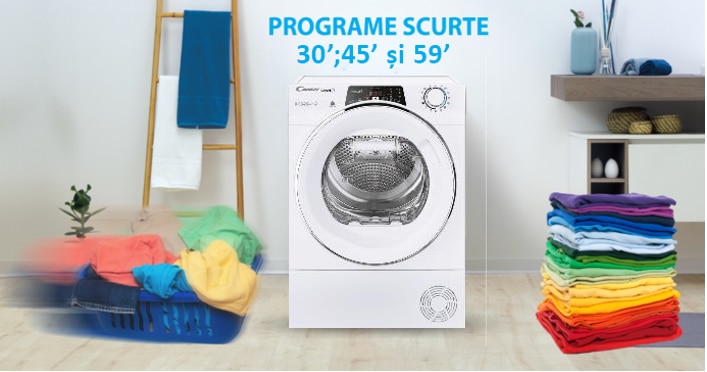 Atunci cand vremea este nefavorabila hainele intinse la uscat pe balcon se usuca foarte greu, plus ca ridica gradul de umezeala din casa ce genereaza o atmosfera nesanatoasa si plina de sporii de mucegai. Uscatorul de rufe reprezinta, asadar, singura solutie care nu depinde de prognoza meteorologica. Prin controlul precis al temperaturii si al timpului de expunere uscatorul are grija de textura rufelor. Uscatorul de rufe Slim Candy RO4 H7A1TEX-S prezentat este produsa in Italia de specialisti italieni din Brugherio (MB). Astfel brand-ul Candy este recunoscut in lume, cu o cota de piata din ce in ce mai importanta, mai ales pe segmentul de electrocasnice. Uscatorul dotat cu pompa de caldura si facuta de specialisti italieni, este o optiune pentru o astfel de solicitare. Modelul cu condensare Candy si cu o capacitate de uscare de 7 Kg îndeplineste o mare dorinţă: aceea de a reuşi să usuce rufele în scurt timp, eliminând spaţiul ocupat de suportul de întins rufe. Cu ajutorul programelor speciale, capabile sa trateze chiar si rufele cele mai delicate, uscatorul stie sa aiba grija de tesaturii. Senzorii speciali permit maşinii de uscat rufe să măsoare umiditatea reziduală din haine şi să se oprească automat la atingerea nivelul corespunzător. Design-ul special al peretilor laterali ai masinii de uscat reduc foarte mult zgomotul si nivelul vibratiilor in timpul uscari. Uscatorul de rufe Slim Candy RO4 H7A1TEX-S avand si un motor universal, asigura o functionare ultra-silentioasa de 67 dB la uscare ridicandu-se la cele mai ridicate standarde de eficienta energetica.